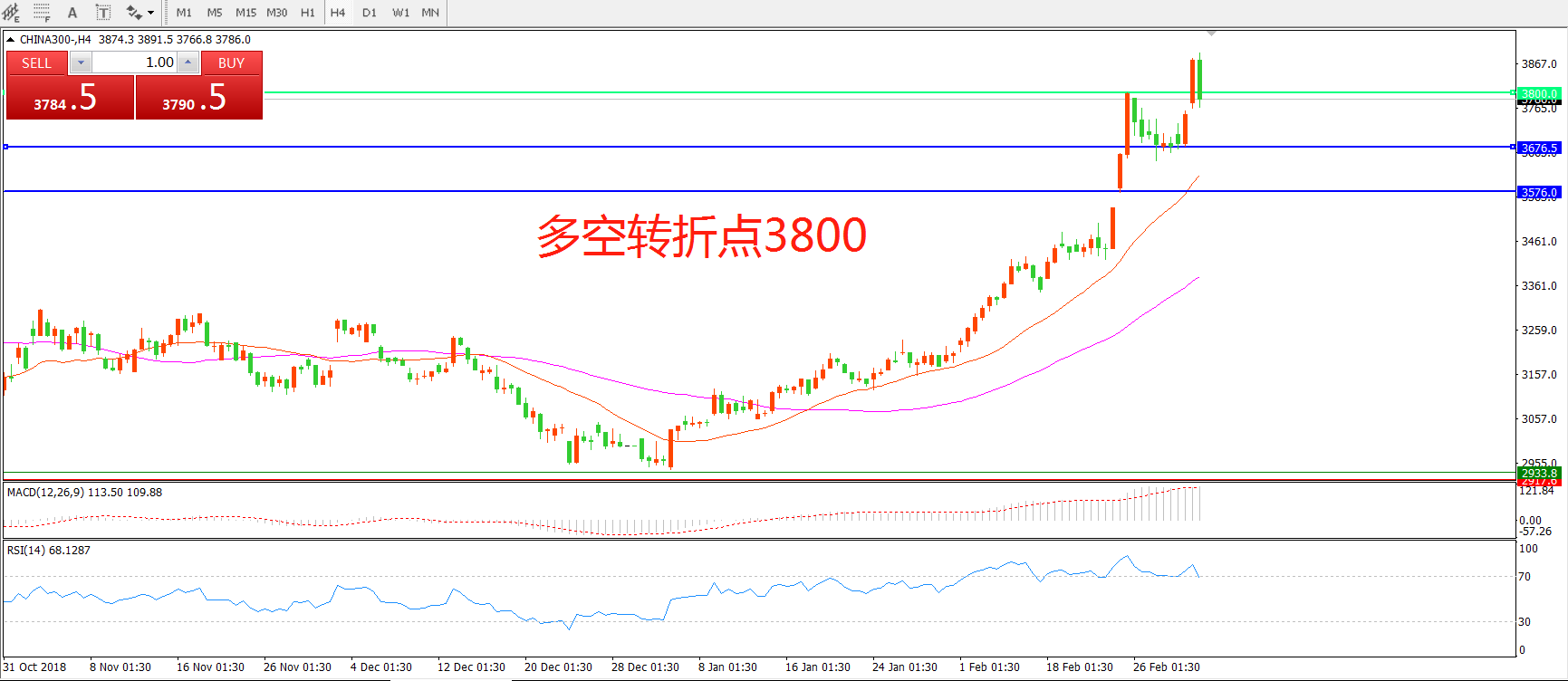 多空转折点:3800.00