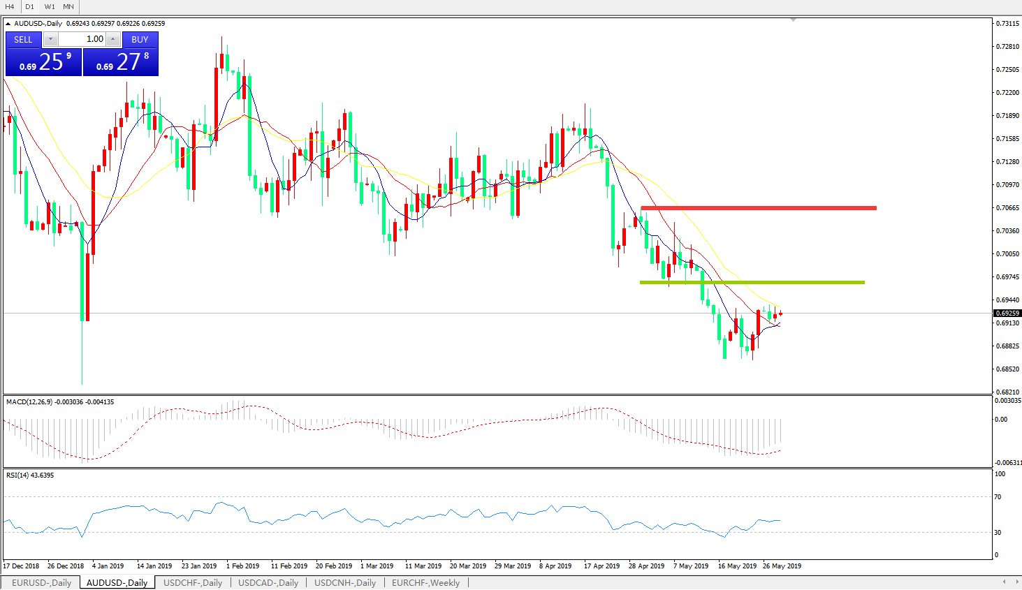 交易策略:在0.6960之下,看跌,目标价位为0.6900,然后为0.6830。