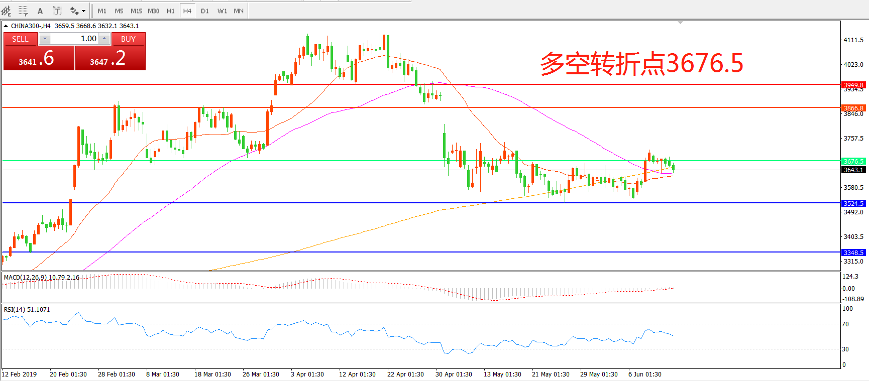 沪深300指数CHINA300 4小时图