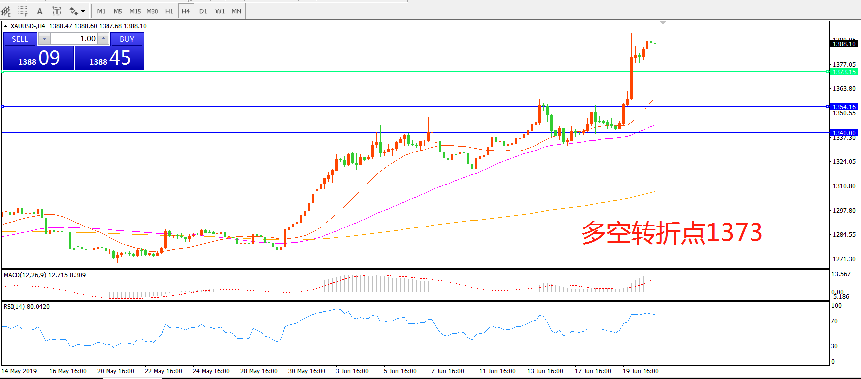 周四(6月20日),因美联储7月降息50个基点的预期升温,加上全球央行进入了宽松周期,因而推动黄金走高。现货黄金一度刷新近6年高点至1394.11美元,随后回落,收报于1388.51美元/盎司。而美伊紧张关系的持续发酵使得避险资金持续涌入黄金,在伊朗击落美国一架无人机后,美国总统特朗普周四在推特中声称伊朗犯了一个“非常大的错误”。 这加剧了人们对两国冲突的担忧。俄罗斯和美国之前刚刚撕毁了《中导条约》,这更令全球投资者感到不安。中东地区过去许多年来已经成为了美俄隔空斗法的主战场.