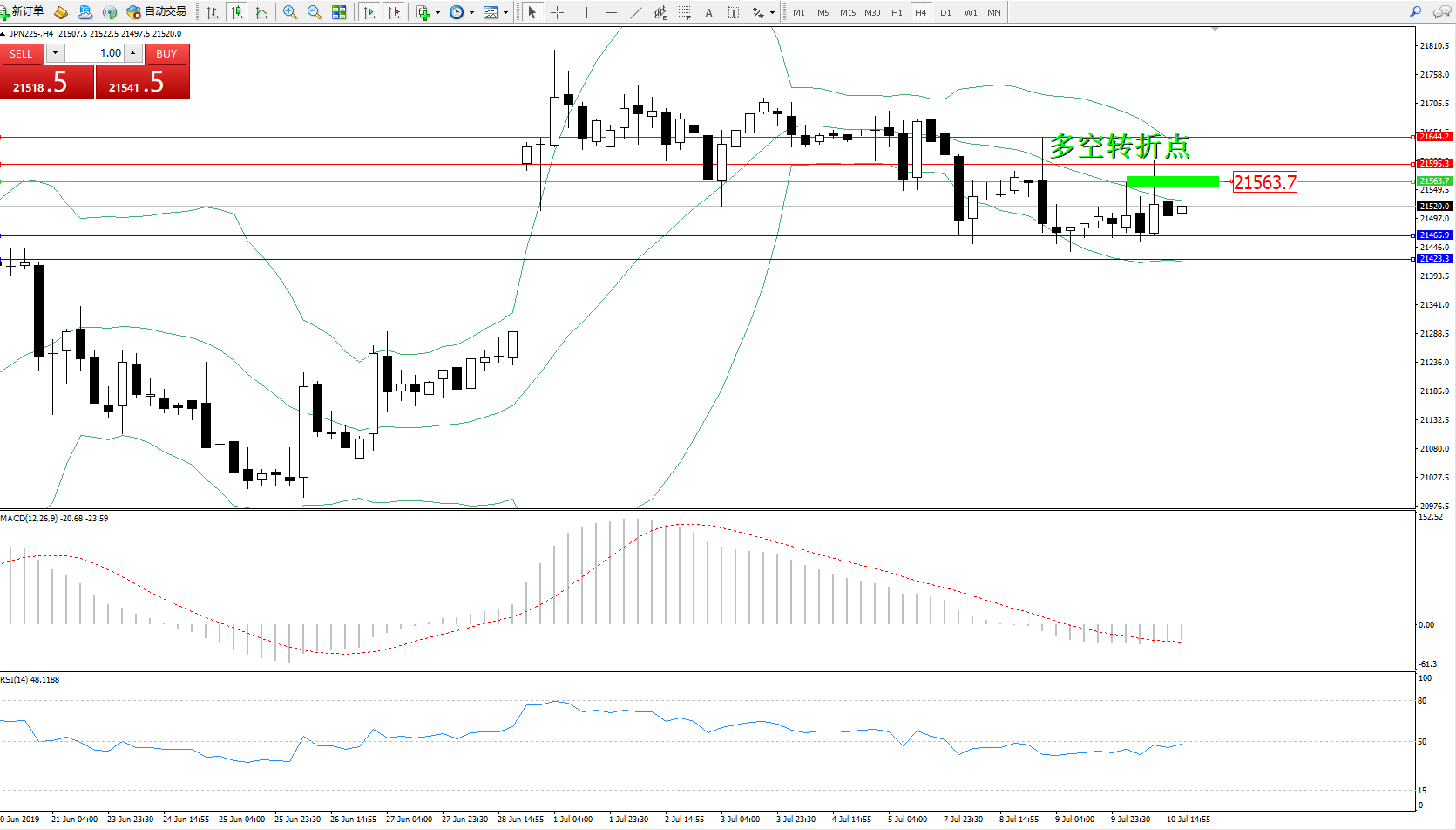 日经225指数7月10日(周三)收盘下跌5.47点,跌幅0.03%,报21544.00点。美联储主席鲍威尔表示贸易不确定性和对全球经济的担忧似乎继续拖累美国经济前景。美联储将采取"适当"行动,以维持美国经济增长,疲弱的通胀有可能比美联储目前预期的更加持久。