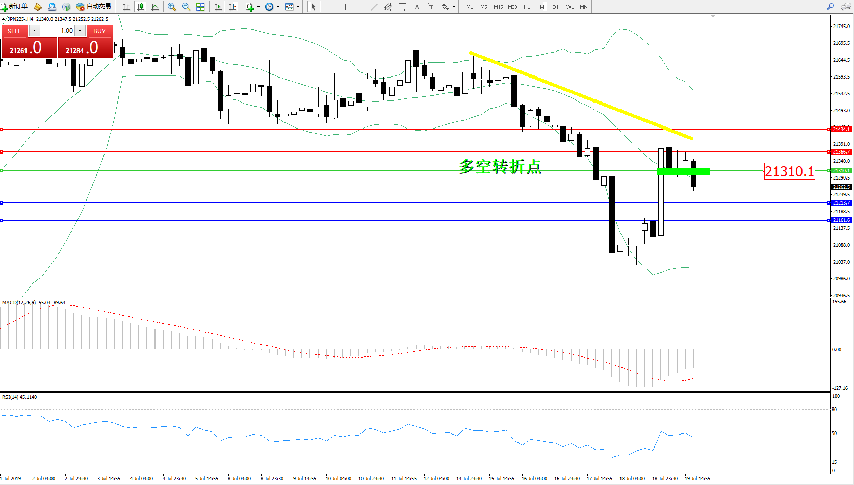 日经225指数7月19日(周五)收盘上涨399.26点,涨幅1.90%,报21445.50点。日本6月份核心CPI年率再度下滑,创2017年7月以来的最低水平。通胀放缓加剧了日本央行效仿全球其他央行,加大货币刺激力度的压力,尤其在市场普遍预计美联储将在本月晚些时候开始降息之际。问题是日本央行的弹药基本已经耗尽。预计日本核心通胀将在走向秋季期间继续放缓,政策相关因素(手机服务费用、教育成本下降)是主要的推动力。