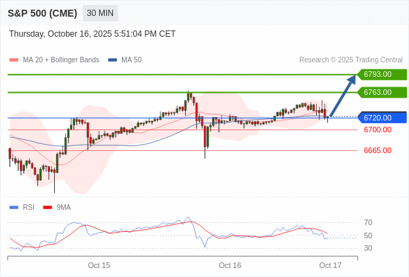 美国标普500指数期货 (Z5) 当日内: 超短线(当日内)支撑位在6720.00附近。