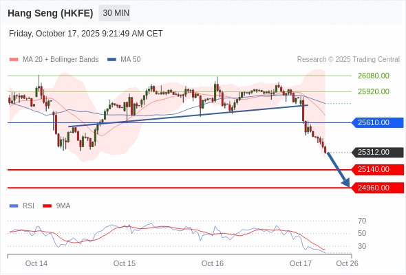 交易策略: 在 25610.00 之下,看跌,目标价位为 25140.00 ,然后为 24960.00 。