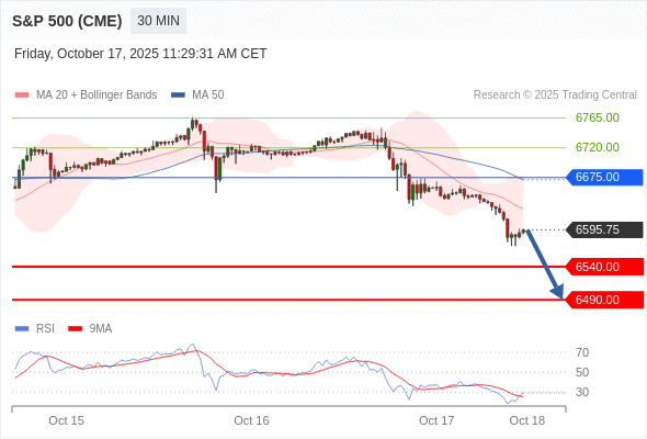 在 6675.00 之下,看跌,目标价位为 6540.00 ,然后为 6490.00 。
