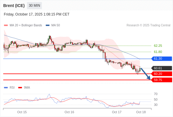 在 61.30 之下,看跌,目标价位为 60.20 ,然后为 59.75 。