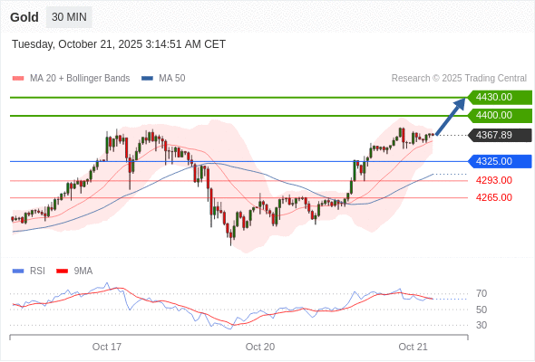 在 4325.00 之上,看涨,目标价位为 4400.00 ,然后为 4430.00 。