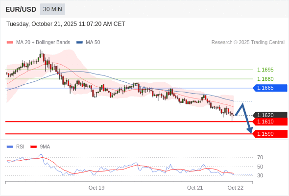 在 1.1665 之下,看跌,目标价位为 1.1610 ,然后为 1.1590 。