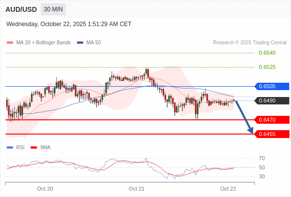 在 0.6505 之下,看跌,目标价位为 0.6470 ,然后为 0.6455 。