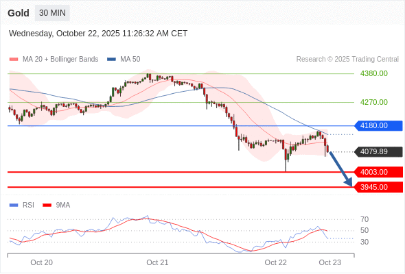 在 4180.00 之下,看跌,目标价位为 4003.00 ,然后为 3945.00 。