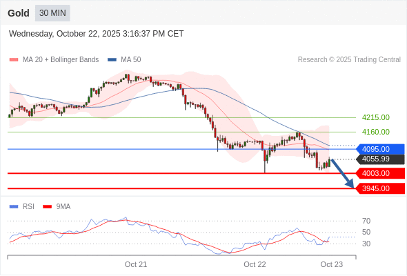 在 4095.00 之下,看跌,目标价位为 4003.00 ,然后为 3945.00 。