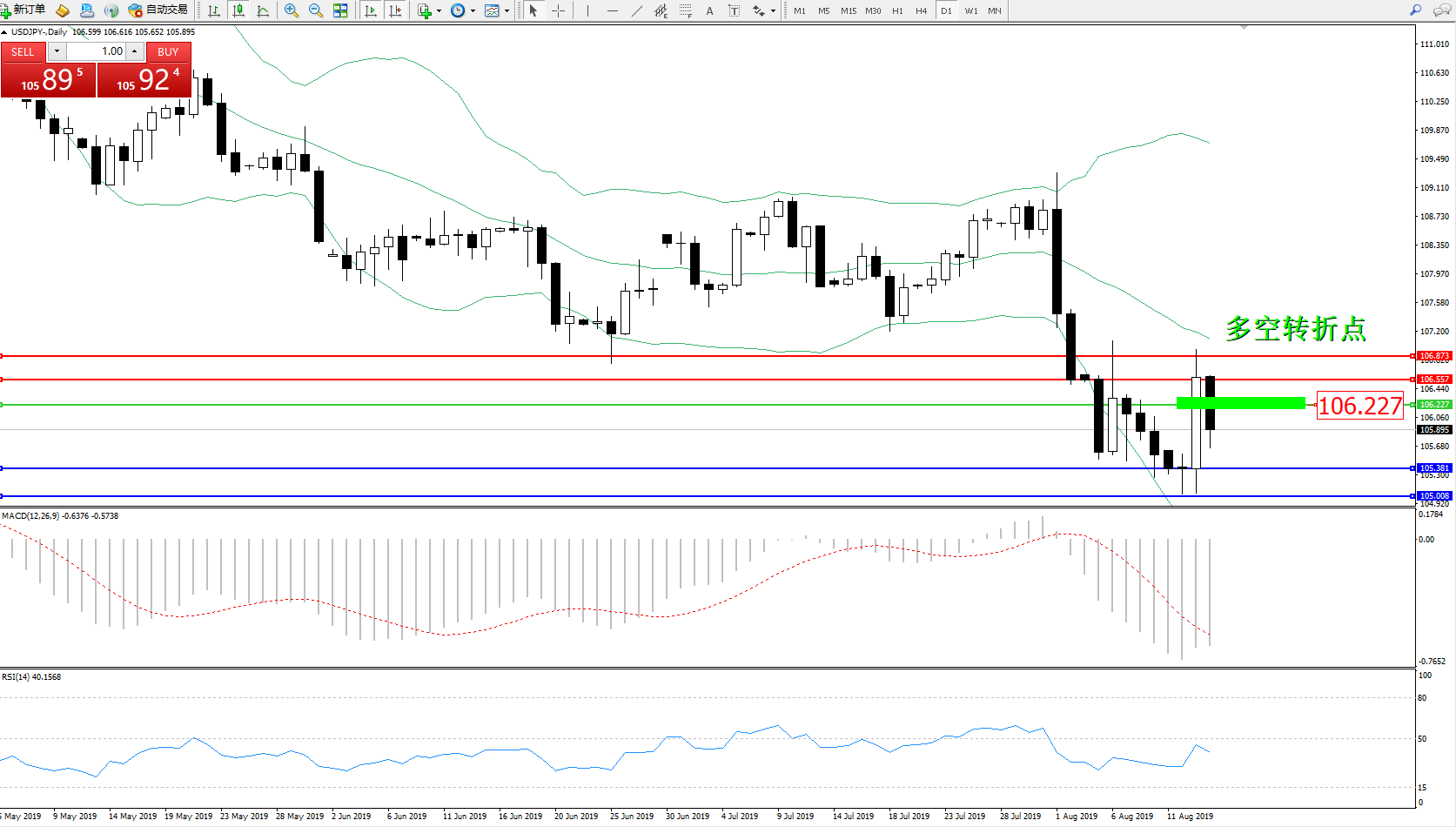 美元兑日元大跌0.75%至105.9附近,日内全球各国经济数据再度低迷,中国7月系列数据系数逊色,同时德国GDP环比录得衰退,这都令投资者对未来全球经济增长前景继续看衰。在此状况下,避险日元对投资者的吸引力巨大。并且日内美国2年期与10年期国债收益率自2007年以来首度出现倒挂,这通常被释读为经济衰退在即的信号,因此美股在盘前即大幅跳跌,这更促进了避险情绪的升温。