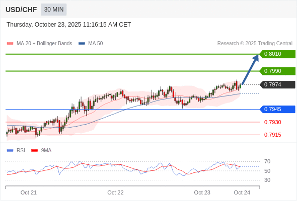 在 0.7945 之上,看涨,目标价位为 0.7990 ,然后为 0.8010 。