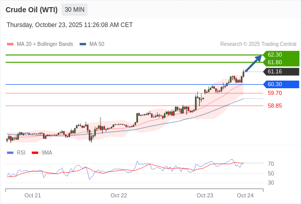 在 60.30 之上,看涨,目标价位为 61.80 ,然后为 62.30 。
