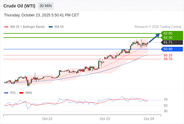 在 60.90 之上,看涨,目标价位为 62.30 ,然后为 62.80 。