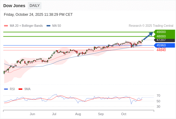 Dow Jones 短线: 在45960之上,看涨。