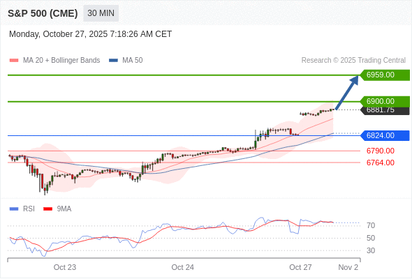在 6824.00 之上,看涨,目标价位为 6900.00 ,然后为 6959.00 。