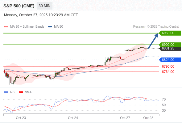 在 6824.00 之上,看涨,目标价位为 6900.00 ,然后为 6959.00 。