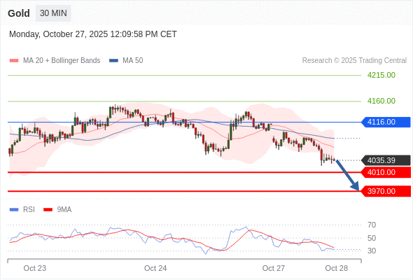 在 4116.00 之下,看跌,目标价位为 4010.00 ,然后为 3970.00 。