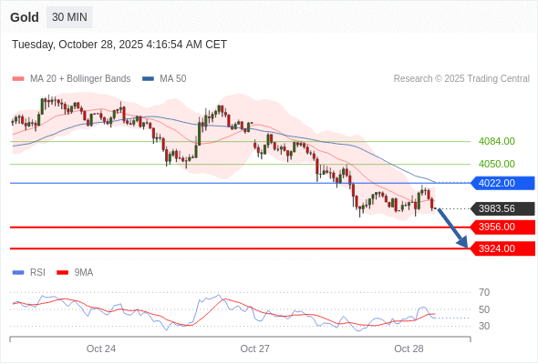 在 4022.00 之下,看跌,目标价位为 3956.00 ,然后为 3924.00 。