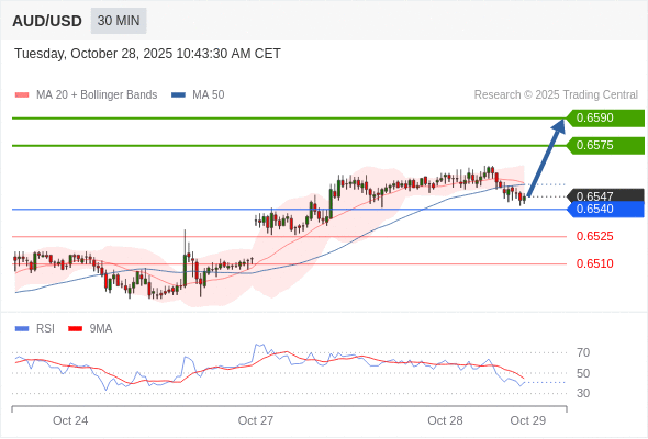 在 0.6540 之上,看涨,目标价位为 0.6575 ,然后为 0.6590 。