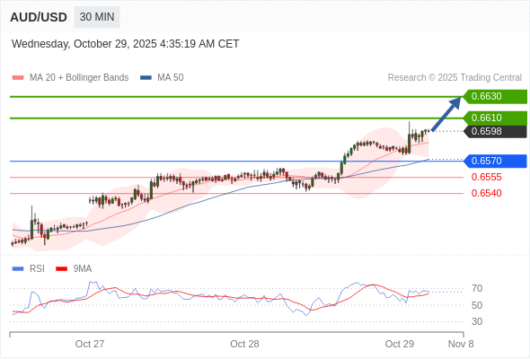 在 0.6570 之上,看涨,目标价位为 0.6610 ,然后为 0.6630 。