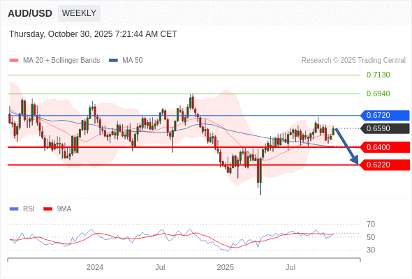 交易策略: 在 0.6720 之下,看跌,目标价位为 0.6400 ,然后为 0.6220 。