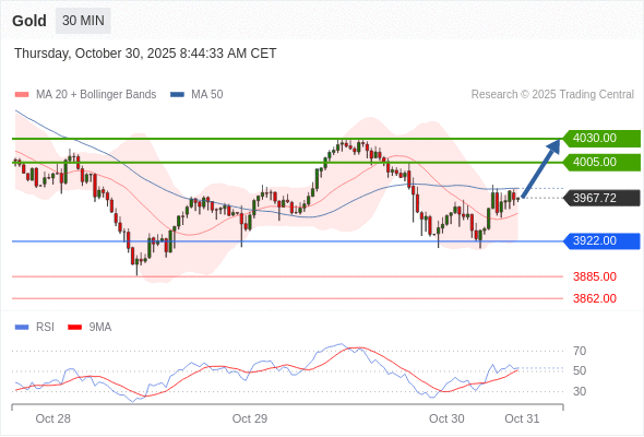 在 3922.00 之上,看涨,目标价位为 4005.00 ,然后为 4030.00 。