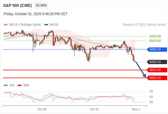 交易策略: 在 6890.00 之下,看跌,目标价位为 6825.00 ,然后为 6800.00 。