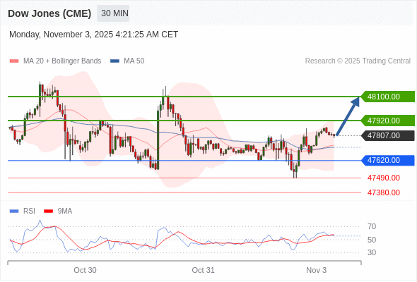 在 47620.00 之上,看涨,目标价位为 47920.00 ,然后为 48100.00 。