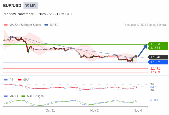 欧元/美元 当日内 : 看涨,当 1.1502 未被跌破。