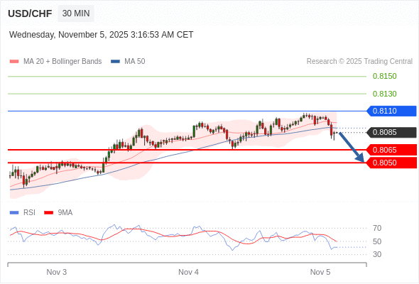 在 0.8110 之下,看跌,目标价位为 0.8065 ,然后为 0.8050 。