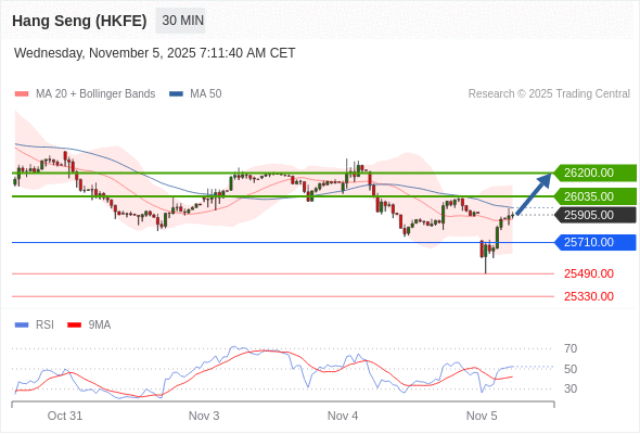 交易策略: 在 25710.00 之上,看涨,目标价位为 26035.00 ,然后为 26200.00 。