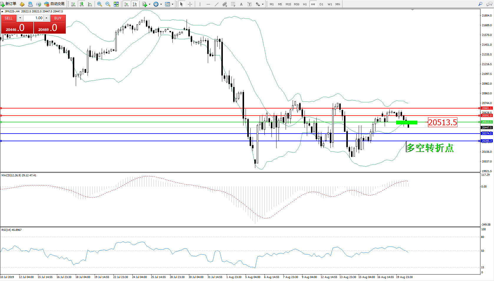 日经225指数8月20日(周二)收盘上涨103.34点,涨幅0.50%,报20666.50点。受到区域贸易局势紧张影响,7月日本出口连续第8个月下滑,增加日本政府对外部需求长期下滑引发国内经济萎靡的担忧。日本制造商8月的商业信心指数自2013年4月以来首次变为负数,这显示日本出口前景黯淡。另一方面,由于全球贸易摩擦等风险因素,作为避险货币的日元已经接近被推升至今年最强劲的水平,这降低了日本出口竞争力。