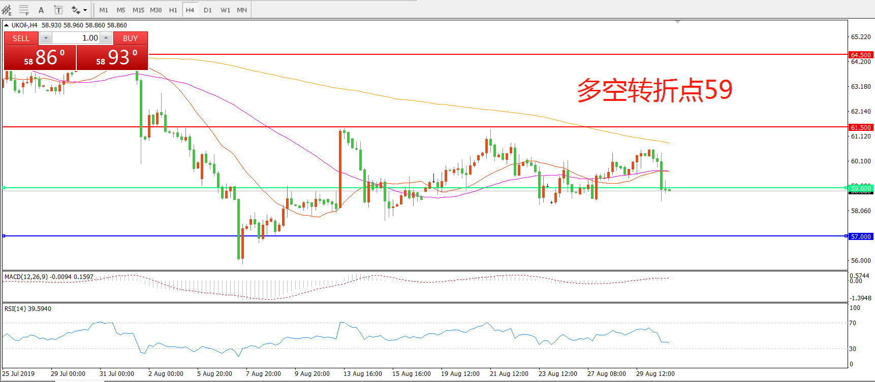 备选策略:在59.00之下看跌,目标57.00 53.00