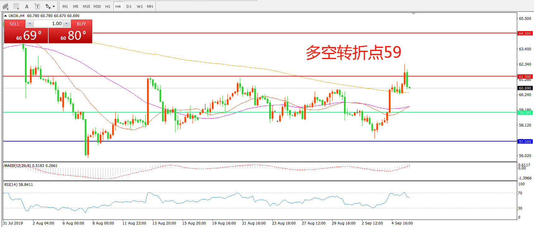 交易策略:在59.00之上看涨,目标61.50   64.50