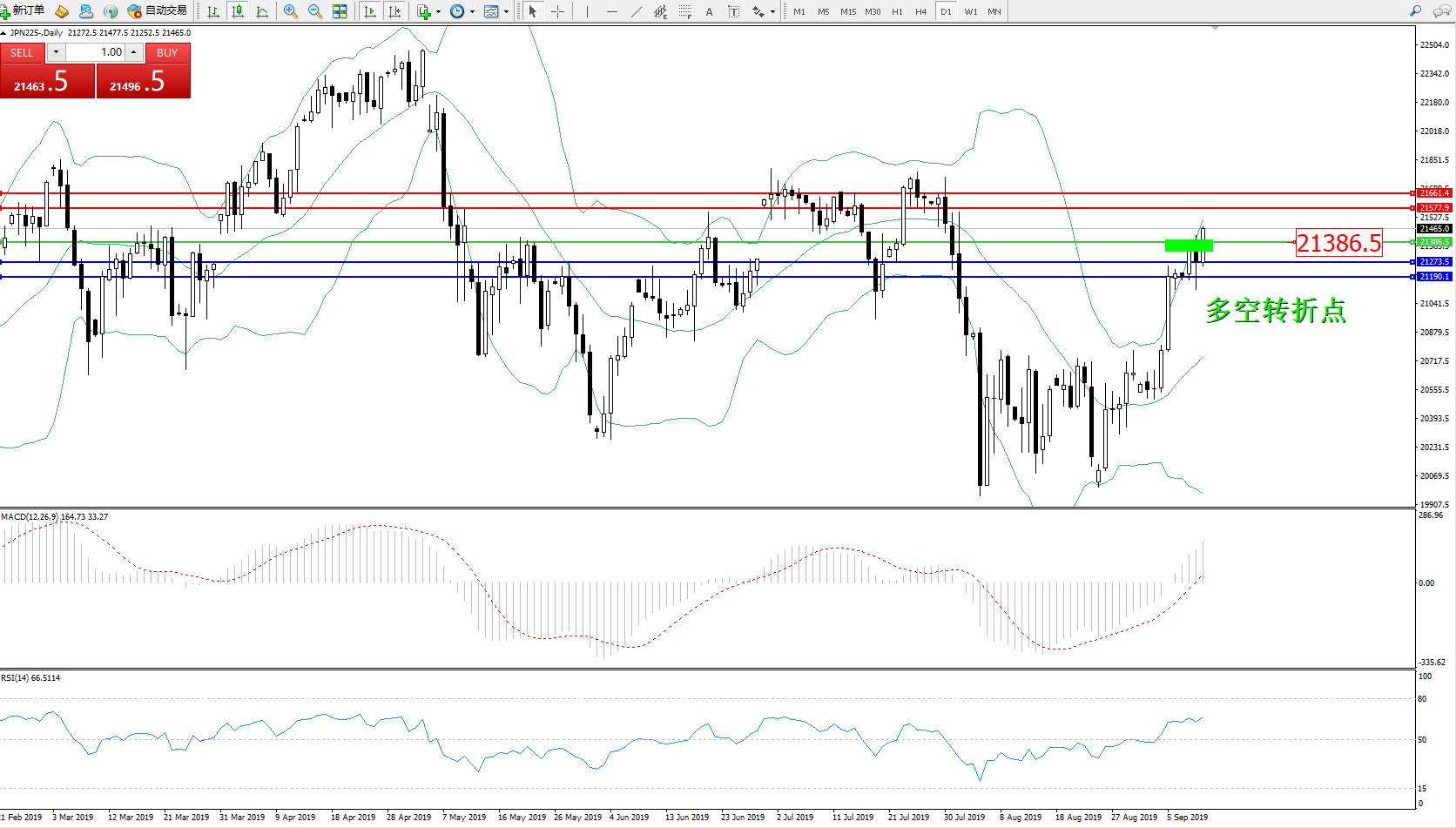 日经225指数9月11日(周三)收盘上涨194.40点,涨幅0.91%,报21586.50点。日本内阁改组名单正式公布。值得注意的是,前复兴政务官小泉进次郎出任环境相,系首次入阁,外相河野太郎则改任防卫相。综合日本NHK新闻网、共同网报道,此次改组共更换17名阁僚,其中有13人系首次入阁。安倍提拔了仅4次当选众议员的小泉进次郎入阁,这一人事任命让日媒略感意外。小泉进次郎是日本前首相小泉纯一郎的二儿子,在日本选民中人气颇高,被视为安倍接班人的有力竞争者之一。众院议院运营委员长高市早苗担任总务相,党总务会长加藤胜信担任厚生劳动相。
