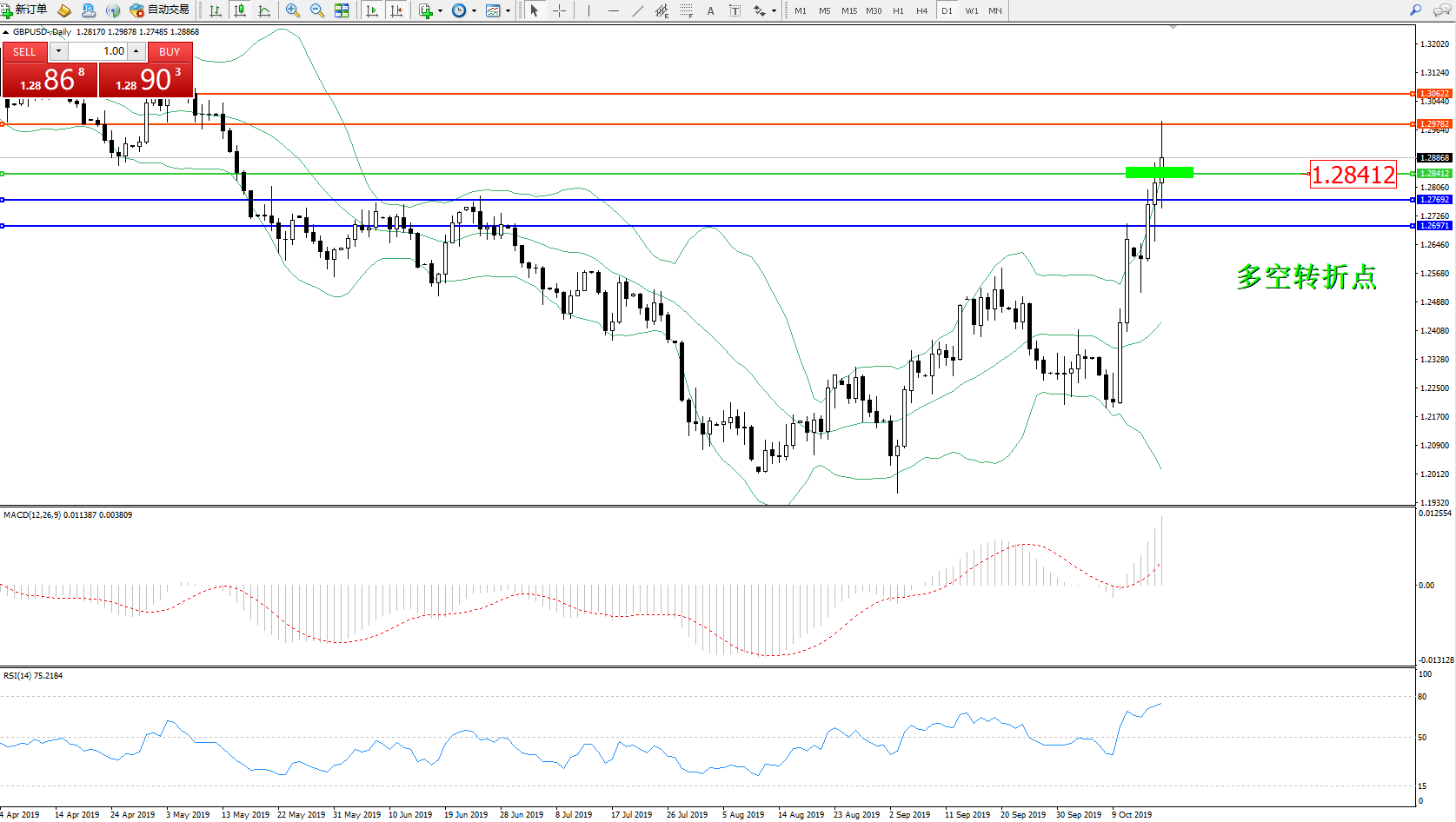 交易策略:1.28412上方看涨,目标1.297821.30622