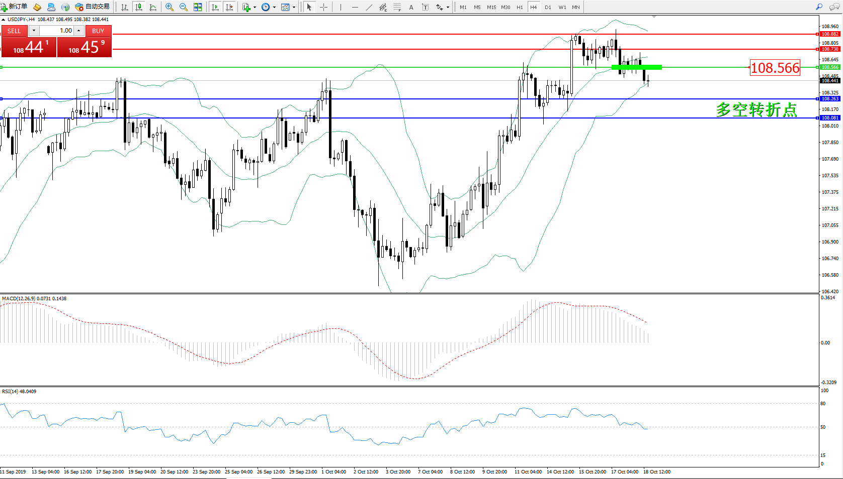 交易策略:108.566下方看跌,目标108.263108.081