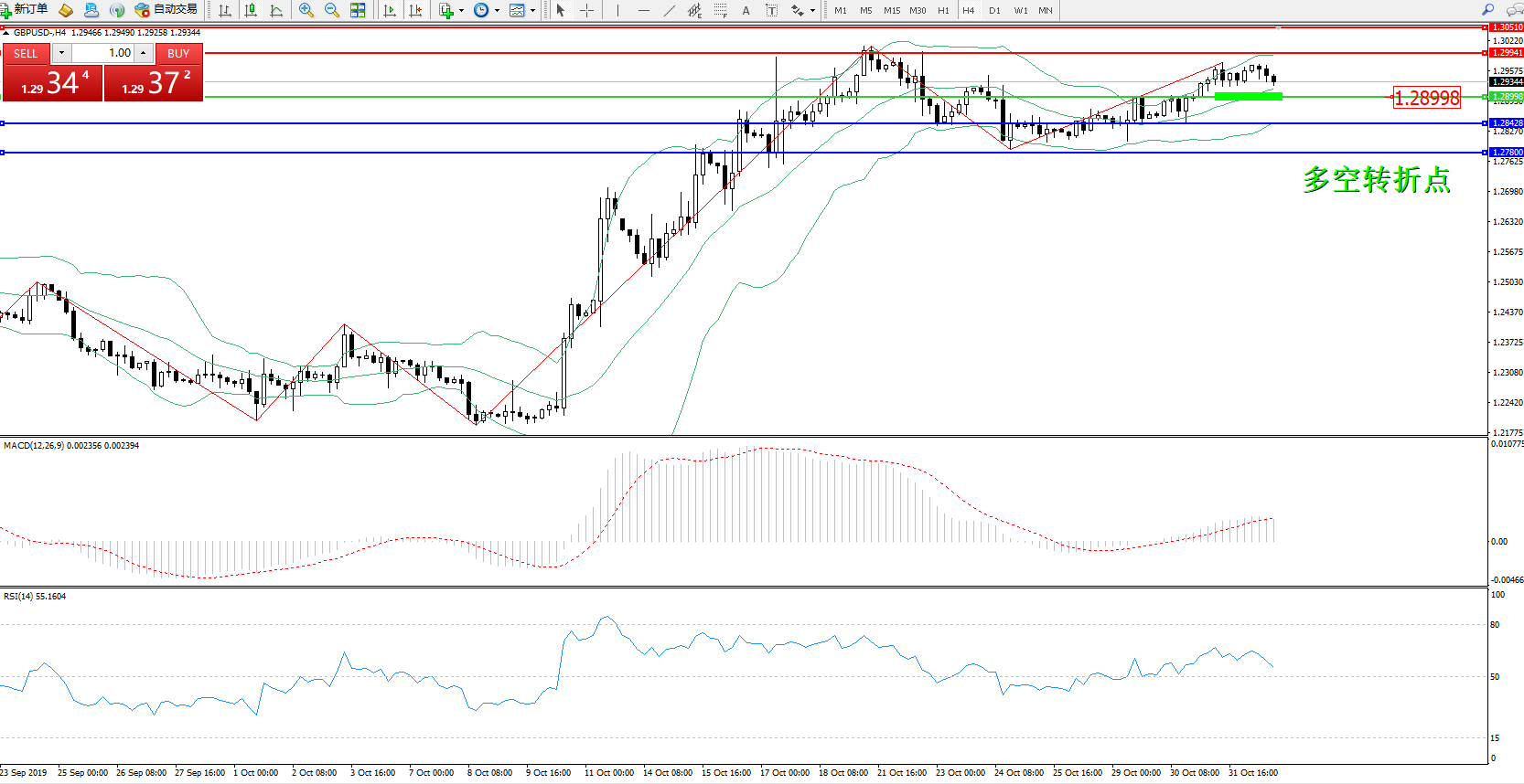 交易策略:1.28998上方看涨,目标1.299411.30510
