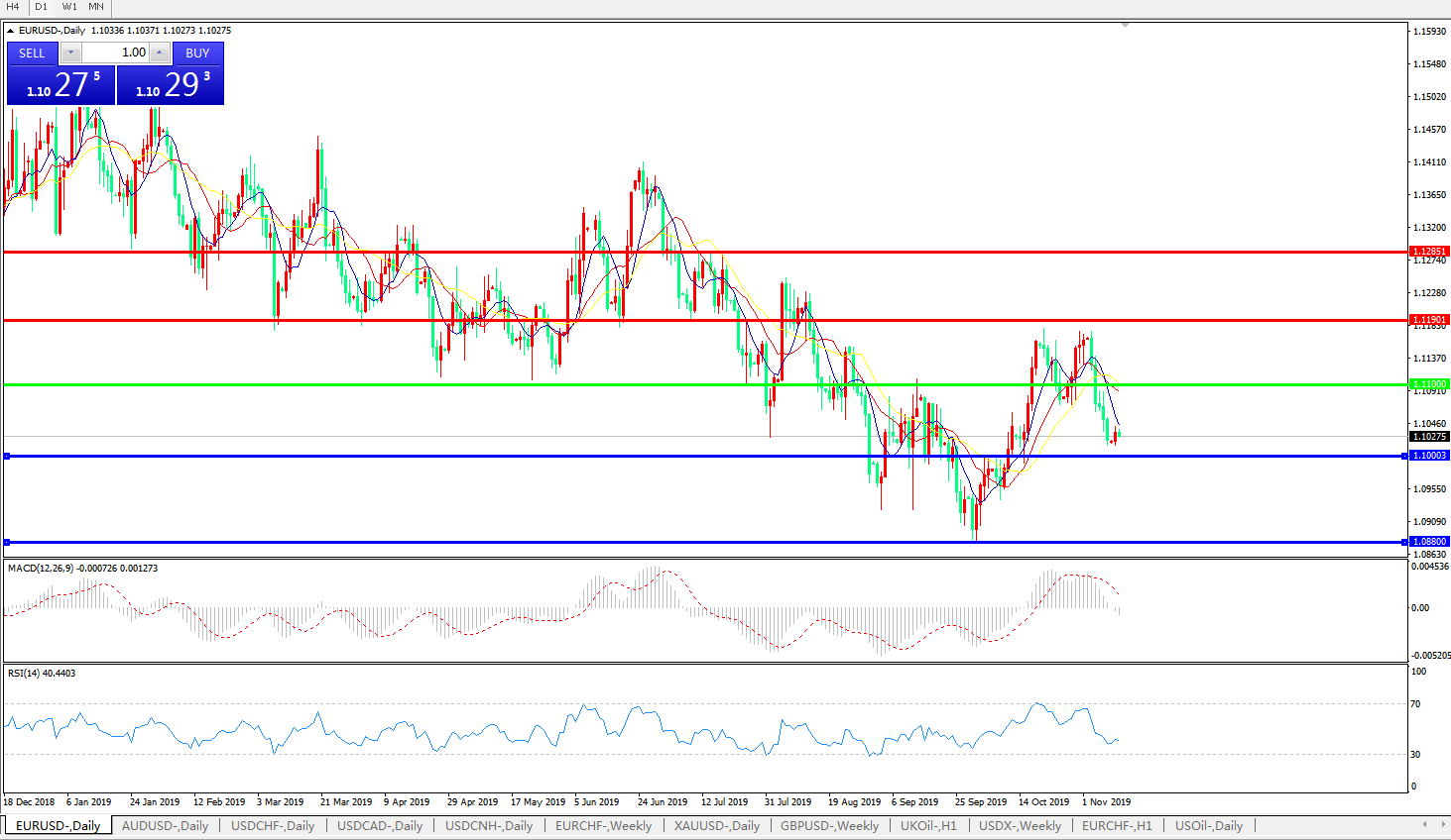 欧元兑美元EURUSD   日线图: