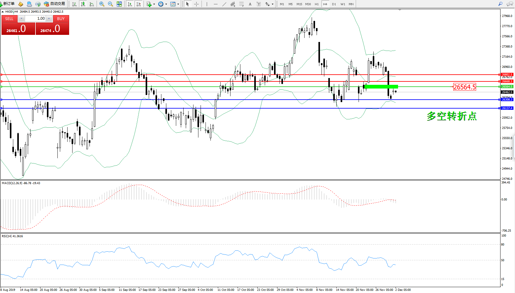 香港恒生指数12月2日(周一)收盘上涨98.23点,涨幅0.37%,报26444.72点;港股早上高开128点后,曾收低报26393。经上周回落后,本周港股大市预计将重启防御姿态,随后跟A股造好再扩大升幅,恒指高见26511。上周六公布的制造业PMI,已经重返荣枯线至50.2%,显示经济层面开始出现积极变化。另外券商板块迎来利好支撑。因此有希望出现探底反弹的走势。