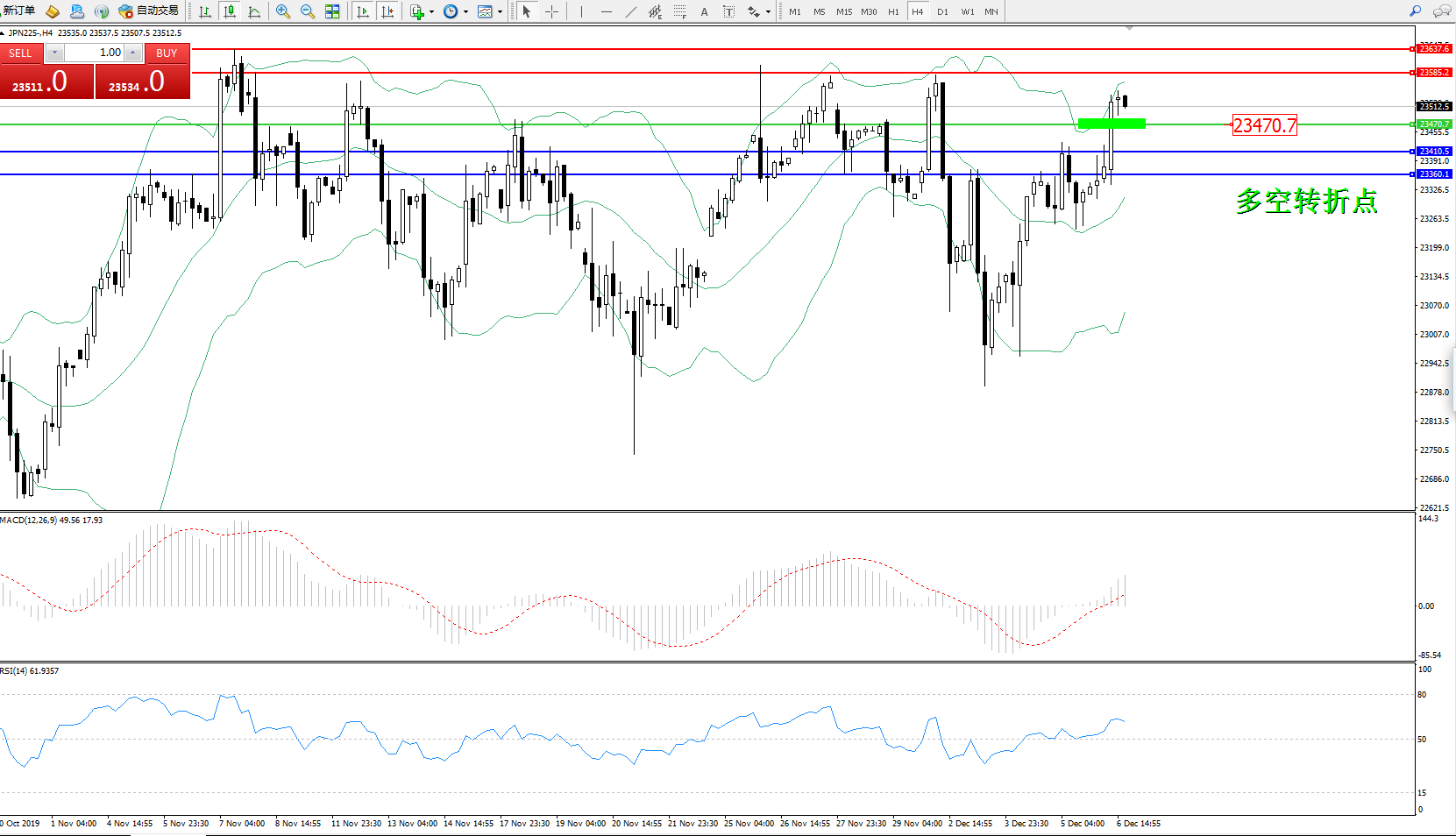 日经225指数12月6日(周五)收盘上涨68.41点,涨幅0.29%,报23368.50点。本10月家庭支出以逾三年半来最快速度下滑,因在消费税上调及天灾影响业务活动后,消费者减少采购。政府周五公布的数据显示,10月家庭支出较上年同期减少5.1%,为2016年3月减少5.3%以来的最大降幅,且逊于预估中值的下滑3.0%。这是9月跳增9.5%的急剧反转,由于消费者赶在10月1日消费税从8%上调至10%之前购物,导致9月家庭支出增幅创纪录;日本内阁周四批准了一项1220亿美元的财政方案,从而在面临海外风险之际支持停滞的经济增长,决策者寻求在2020年东京奥运会之后维持经济活动势头。近期公布的出口和制造业产出等一批低迷数据,加剧了对经济放缓程度可能比预期严重的担忧。