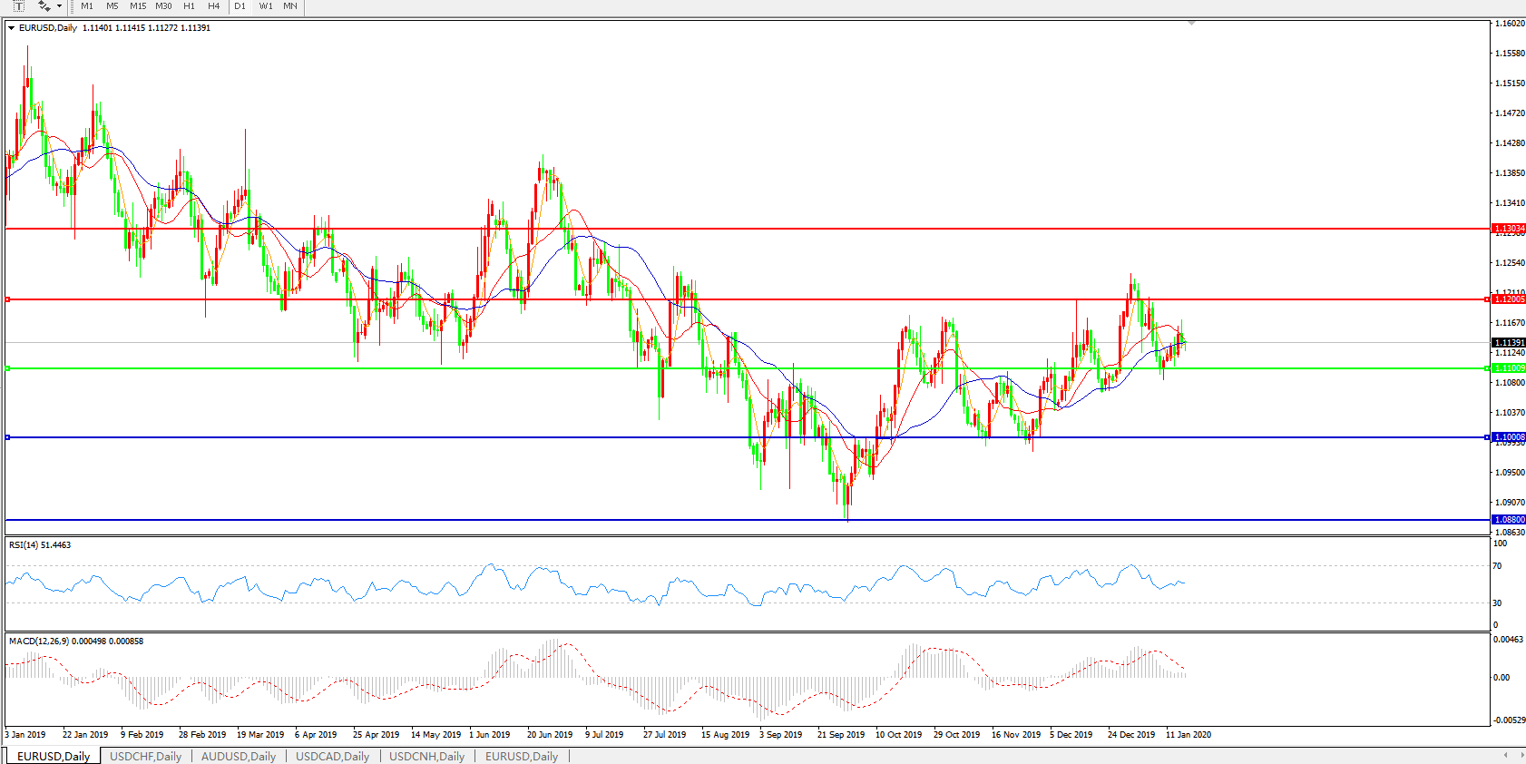 交易策略:1.1100上方看涨,目标1.1200、1.1285