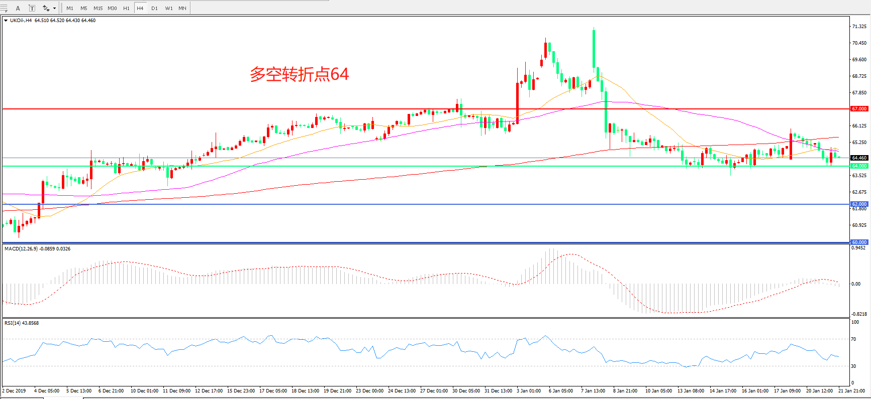周二(1月21日),因市场预期包括美国增加的产量能够抵消利比亚原油生产中断的影响,布油波幅不大,窄幅震荡后收报64.46美元/桶。此外石油输出国组织(OPEC)周二在最新发布的统计报告中强调,与2018年相比,2019年该组织的原油产量下降了6.3%,降幅约200万桶/日,利好油价。