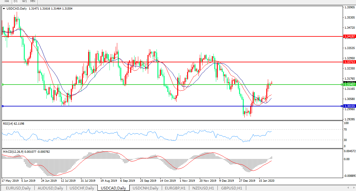 交易策略: 在1.3140之上,看涨,目标价位为1.3270,然后为1.3420。