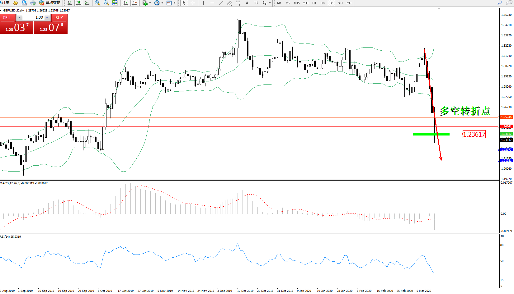 交易策略:1.23617下方看跌,目标1.22077、1.21021
