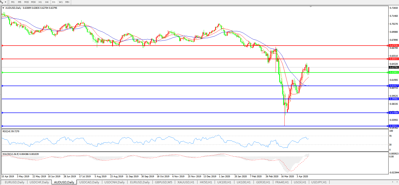 交易策略:0.6300下方看跌,目标0.6100、0.5900