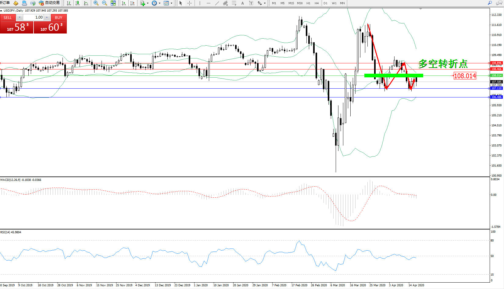 美元兑日元跌0.35%至107.54;全周跌0.8%,周低点106.93是近期支撑。日本首相安倍晋三表示日本仍未达到减少接触的目标。之后投资者稍加留意日本的商品贸易帐。日本央行行长黑田东彦在最近的讲话中给日本经济拉响了警报。疫情的蔓延正在对日本的经济产生严重影响,经济前景极为难料。日本央行会在4月27-28的政策会议上发布最新价格和经济前景预期。届时大幅下调预期的可能性很大,尤其是考虑到首相安倍晋三本周已宣布部分地区进入紧急状态后就更是如此。紧急状态所覆盖地区的经济产出占到日本经济总产出的一半。本季度日本经济会出现两位数的萎缩。