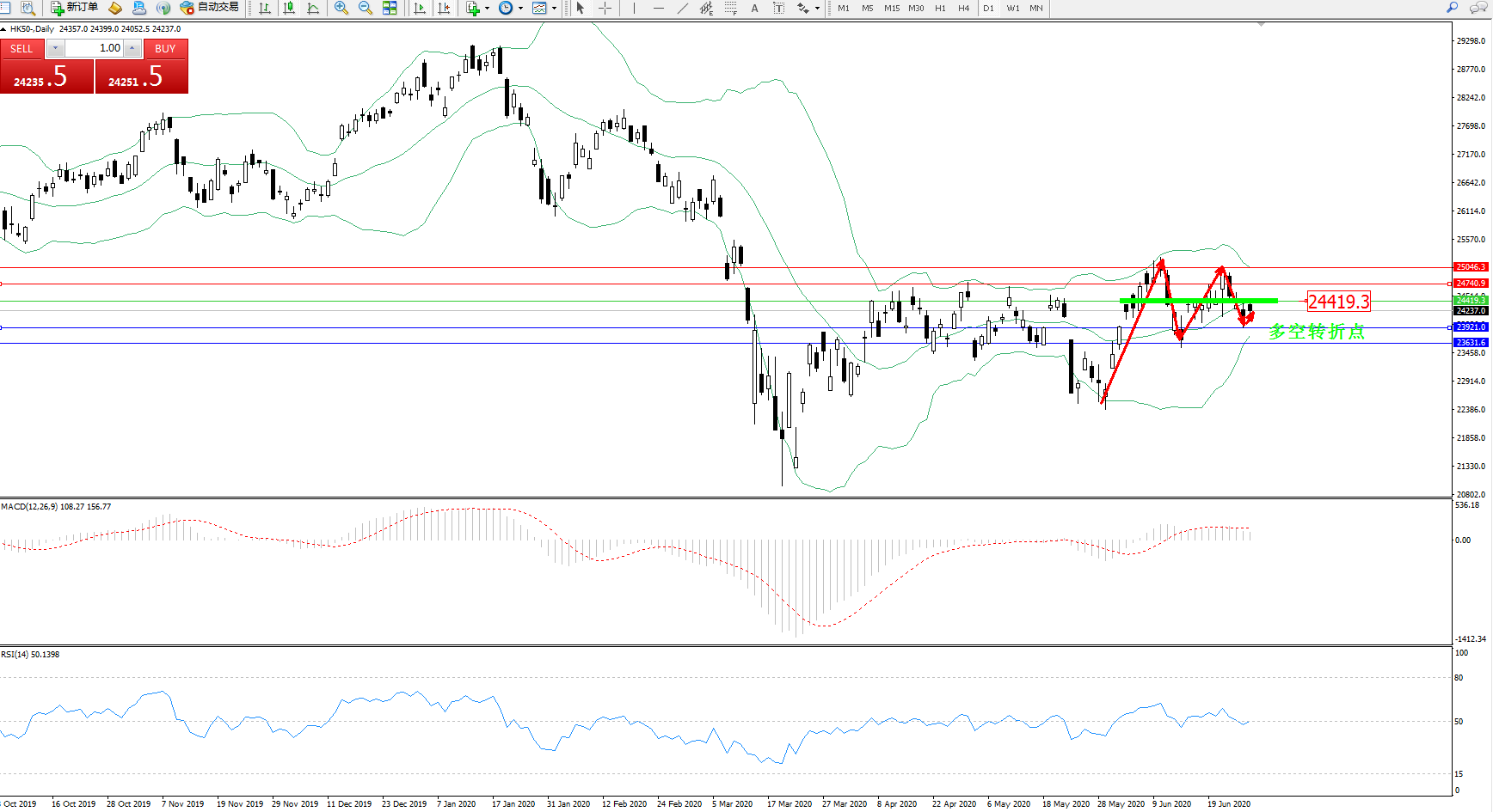 香港恒生指数6月30日(周二)收盘上涨125.91点,涨幅0.52%,报24427.19点;港股三大指数呈高开低走行情,一度涨超1%的三大指数盘中曾纷纷翻绿。国指涨0.01%报9758点,红筹指数跌0.14%报3756点。南下资金大幅净流入62.79亿港元,大市成交额为1224.9亿港元。软件股表现活跃,金蝶国际升超6%续创新高;蓝筹股大多强势,港交所升超3%再创新高,腾讯大涨2.59%力撑大市。6月收官恒指反弹超6%,上半年下挫13.3%。上半年南向资金累计净流入3000.15亿港元。因7月1日(本周三)是香港回归纪念日,港股休市一日。港股通(南向)方面,7月1日暂停服务,7月2日恢复正常。十三届全国人大常委会第二十次会议30日在北京人民大会堂举行第二次全体会议、第三次全体会议和闭幕会。会议表决通过了《中华人民共和国香港特别行政区维护国家安全法》,国家主席习近平签署第49号主席令予以公布;表决通过了全国人民代表大会常务委员会关于增加香港特别行政区基本法附件三所列全国性法律的决定。